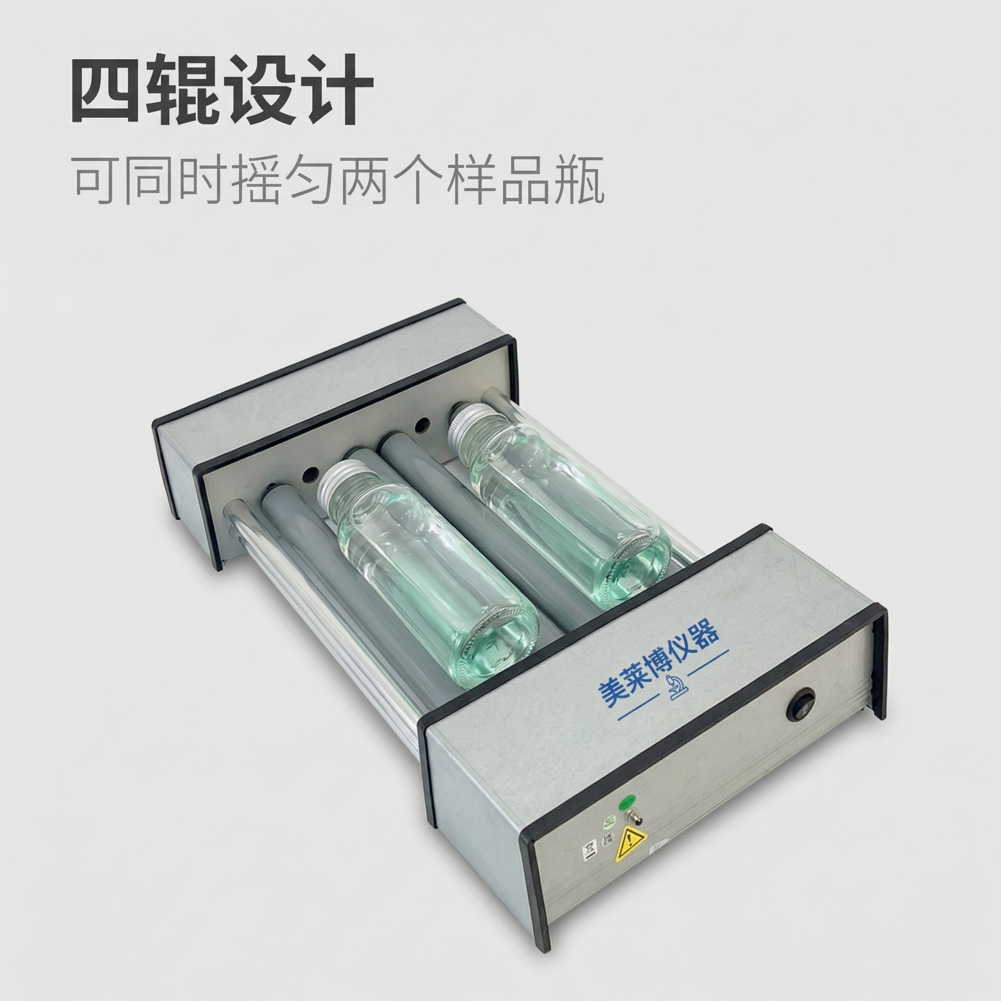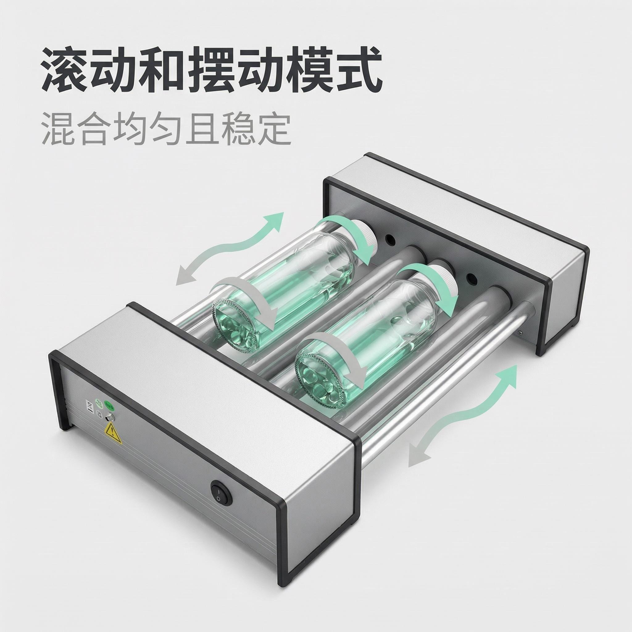 Constant-speed roller mixer, 4 rollers, suitable for shaking 2 roller bottles, with rolling swing mode, any fixed speed can be specified, the specified speed range is 5 to 120, can switch between forward and reverse rotation, simple structure, affordable price.
