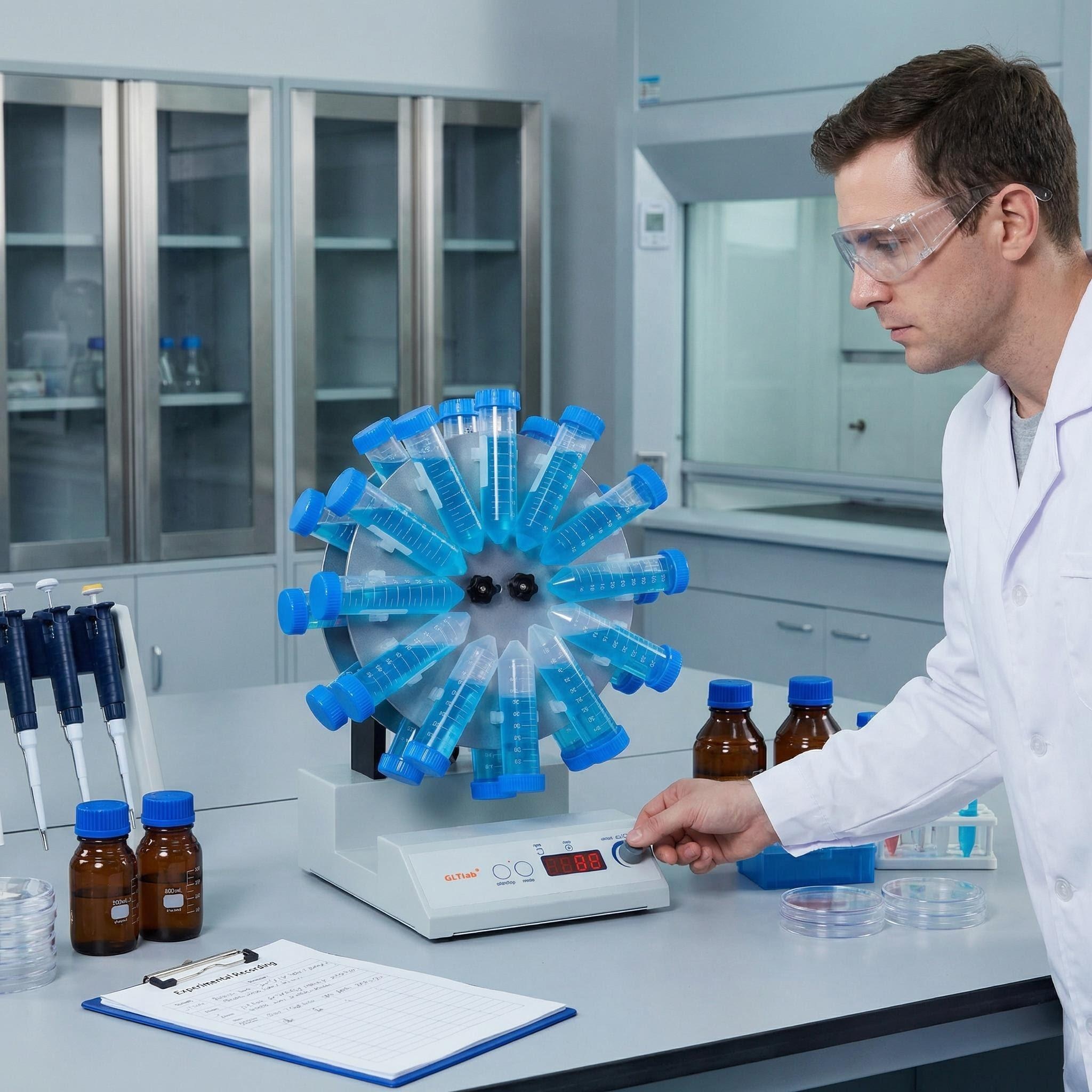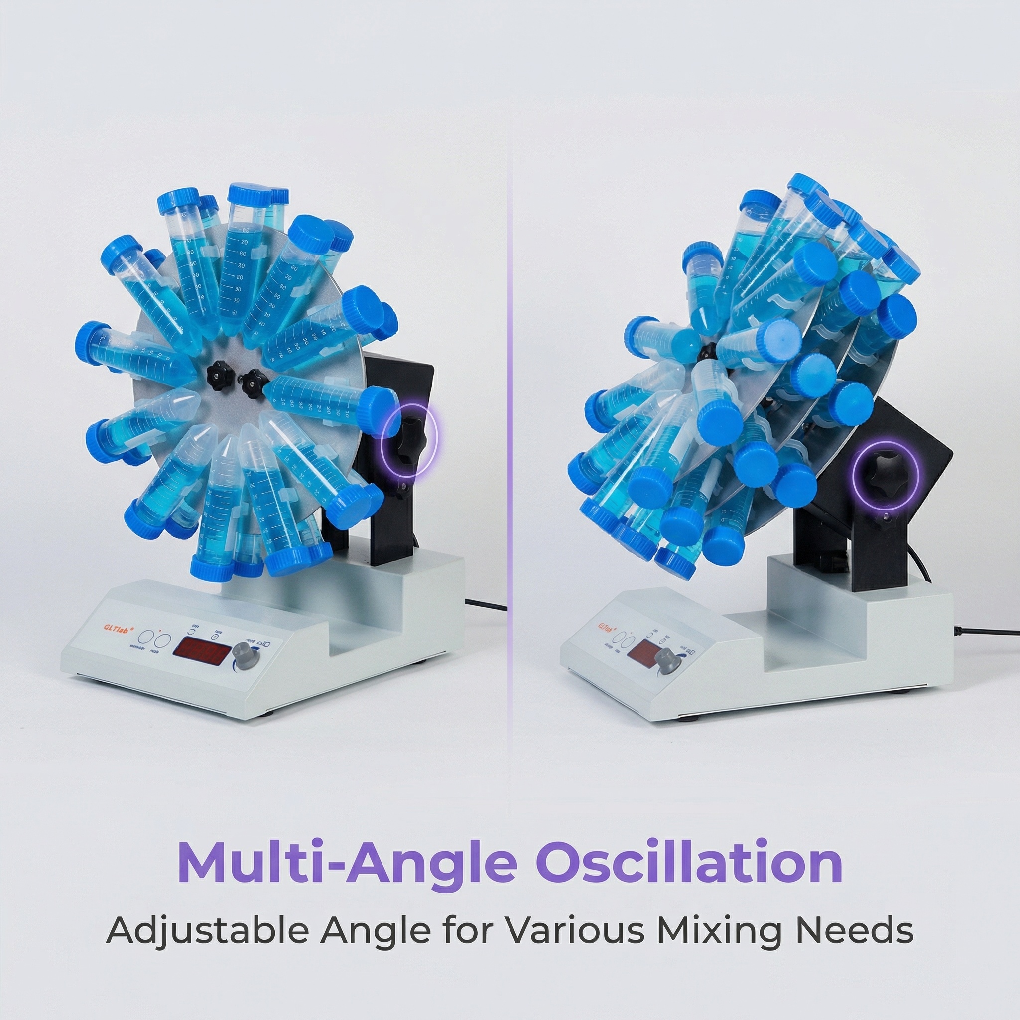 .The rolling action: when the samples place against the radius of the sample tray, i.e.perpendicuform, the mixer perform a rolling effect on the samples. To prevent the fall off of the samplesduring head of the rotator can be ajusted in certain angle.