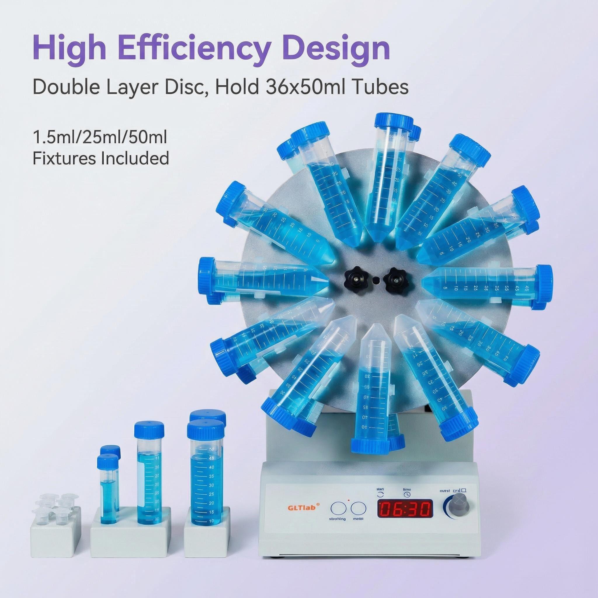 Our upgraded rotating mixer can hold 3 tube holders at a time.